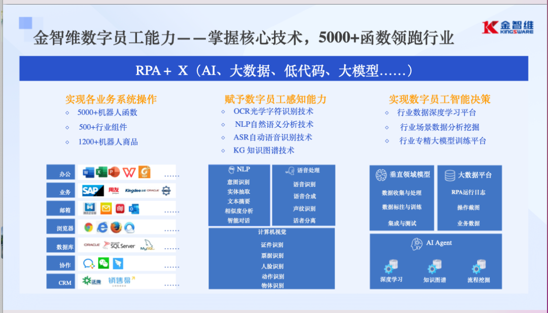 【单位介绍】珠海金智维信息科技有限公司成立于2016年,是一家专注于企业级RPA(机器人流程自动化)技术研发与应用的高新技术企业。公司以RPA平台为核心,融合AI、OCR等技术,为金融、政务、制造等行业提供数字化转型解决方案,其产品K-RPA平台在国内市场广泛应用,尤其在金融领域占据领先地位。金智维凭借技术创新和市场表现,先后获得国家级专精特新“小巨人”企业等多项荣誉,并完成多轮融资,持续推动企业级RPA技术的发展与应用。