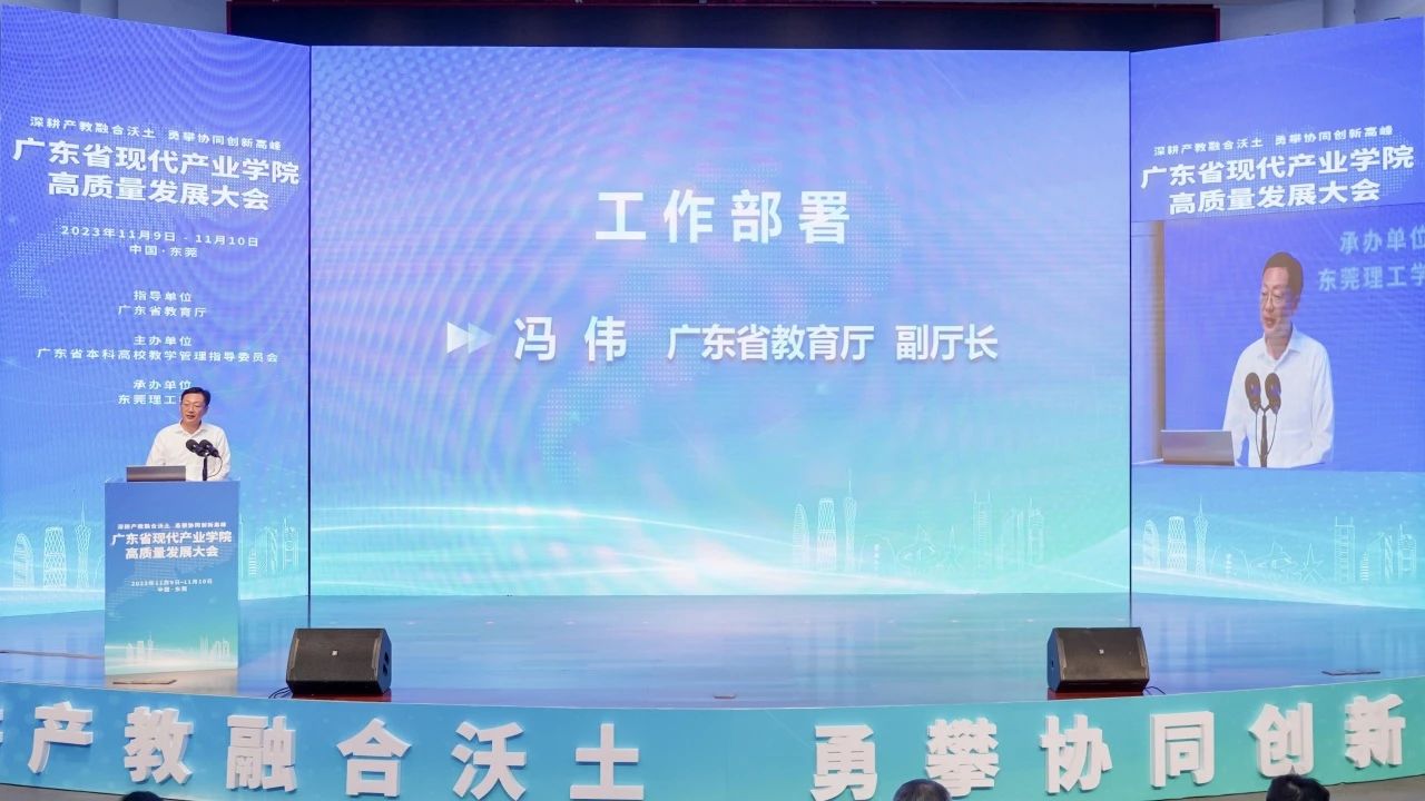 11月10日上午,大会正式举行。会上,广东省教育厅副厅长冯伟同志对广东现代产业学院建设进行了工作部署。他指出,现代产业学院建设要坚持产教融合不动摇、共建共管不打折、内涵建设不放松、育人导向不偏移,并着力做好扩大产业学院协同合作、完善动态管理评价标准、强化政策资金配套支持等工作。