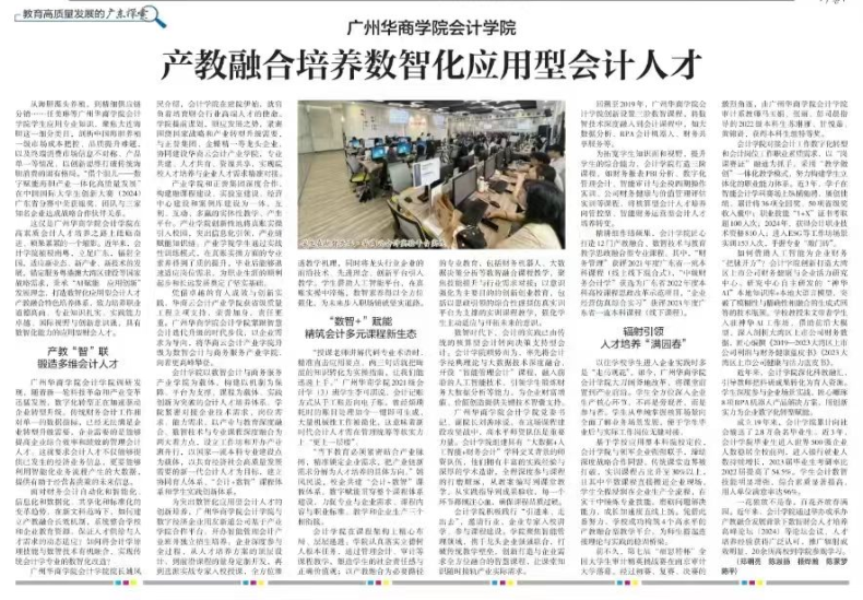 《中国教育报》对学院产教融合的数智化会计人才培养成果进行专刊报道,充分体现学院在人才培养方面的创新实践和卓越成效获得广泛认可。专刊从人才培养模式创新、课程体系建设、实践教学改革、校企合作成果等多个角度深入报道,展示学院在推动数智化会计人才培养方面的积极探索和成功经验,不仅为学院树立良好社会形象,也为其他高校在财经教育领域改革发展提供了有益借鉴。