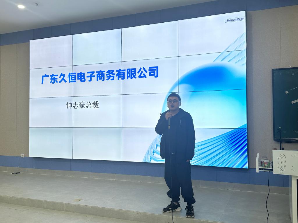 广东久恒电子商务贸易有限公司总裁钟志豪向同学们详细介绍了跨境电商的从业经历,从行业的角度分析了跨境电商的市场趋势,分享了成功的运营模式。