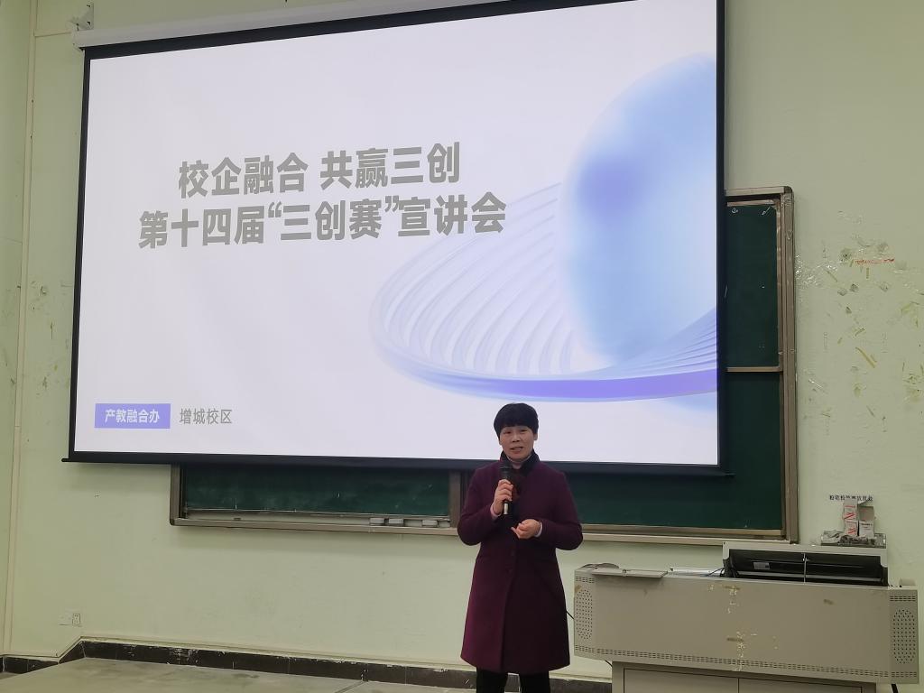 产教融合办公室张真副主任从大赛背景为切入点,结合自身创赛经验,详细地为同学们讲解了“三创赛”概况、赛制赛程、赛道、比赛规则以及评分标准,攻略选题、队伍组建、项目实战、路演答辩等,提及我校近年来“三创赛”获奖情况,经统计,第十二届”三创赛“我校获得国奖一等奖、 国赛二等奖、 国赛最佳创业奖以及省奖多项,第十三届”三创赛“两支队伍荣获跨境电商赛道省赛三等奖,并鼓励同学们积极参与,把握时间培育项目,勇创佳绩。