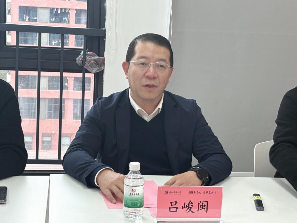 吕峻闽副校长作总结讲话,此次座谈会为学校与大事件科技集团搭建了良好的沟通桥梁,双方在产教融合、人才培养等方面具有广阔的合作空间。他强调,学校将继续秉持开放合作的理念,推动校企深度合作,共同探索产教融合新模式,为社会培养更多适应市场需求的高素质创新人才。