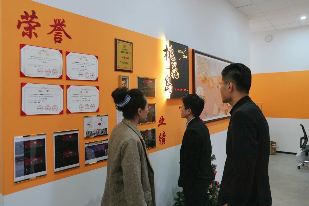在吕峻闽副校长等校方领导的陪同下,大事件科技集团创始人兼CEO汤宇先生一行参观了动漫游戏产业学院、数字贸易产业学院以及广州桃花岛网络咨询有限公司。通过实地考察,嘉宾们深入了解了广州华商学院在新媒体运营、直播运营、跨境电商等领域的前沿教学设施与实践成果,对学校在产教融合领域的积极探索有了更直观的认识。