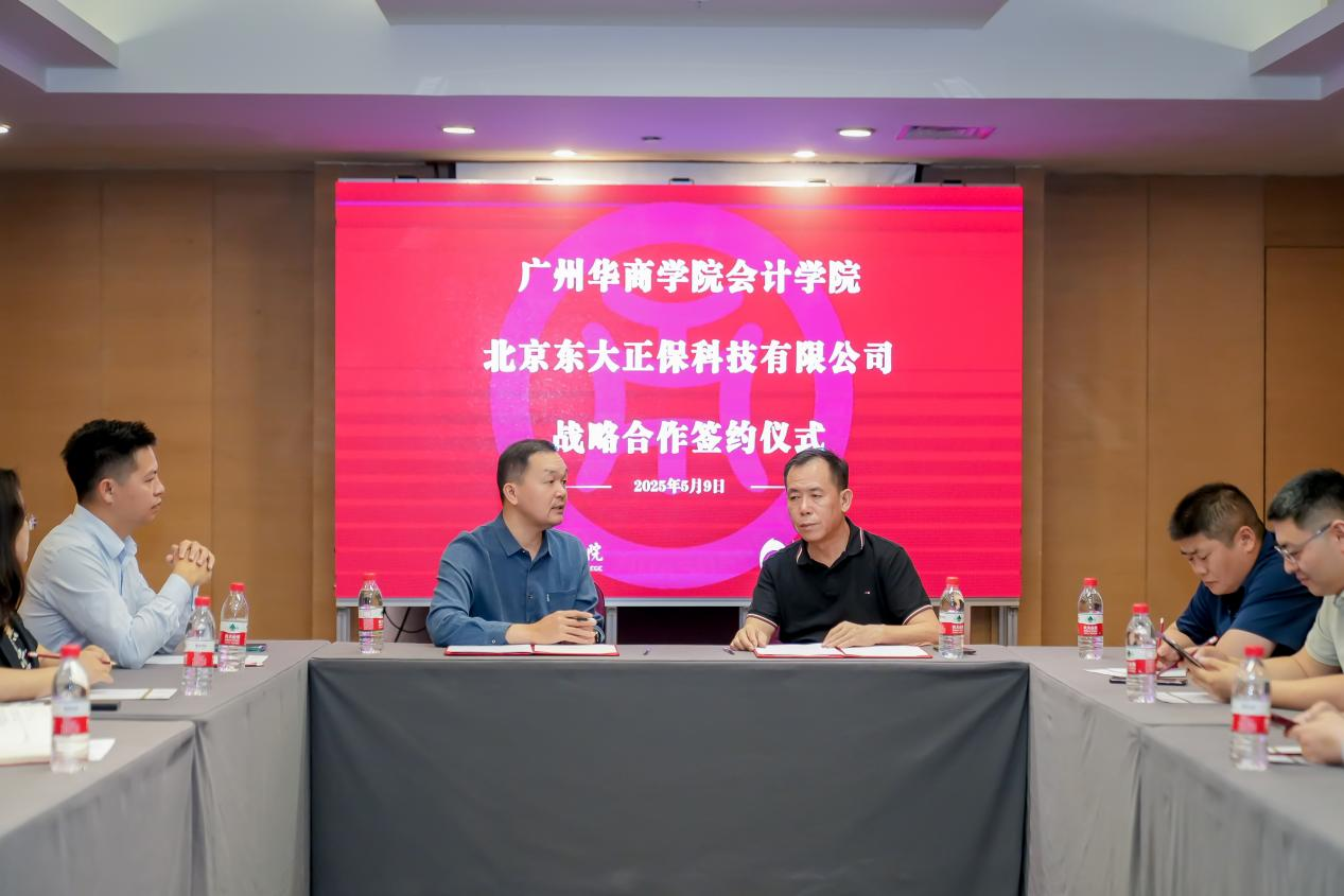 2025年5月9日,广州华商学院会计学院与北京东大正保科技有限公司(以下简称“正保教育”)正式签署战略合作协议,标志着双方在深化产教融合、推动教育创新领域迈出重要一步。此次合作旨在整合校企资源优势,共同探索财经教育高质量发展路径,为培养新时代应用型人才注入新动能。