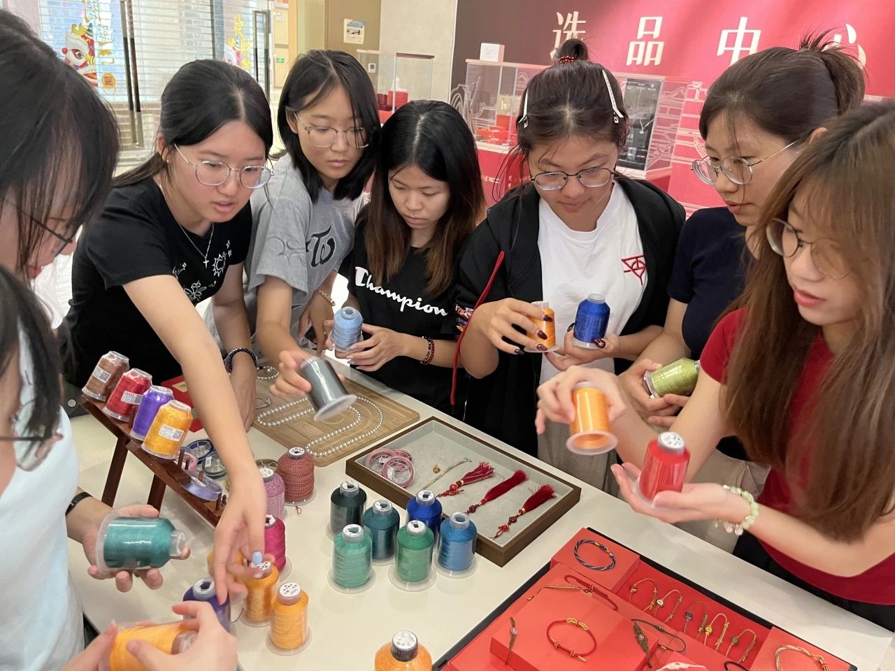 大家在誉宝珠宝工艺体验中心(广州)参观了故宫文创的展品并体验了中国非遗珠宝绳艺文创产品工艺,感受到中国千年绳结非遗文化的传承魅力,也激发了大家对文创产品设计研发的兴趣,纷纷表示希望继续学习有机会参加故宫文创选品设计比赛。