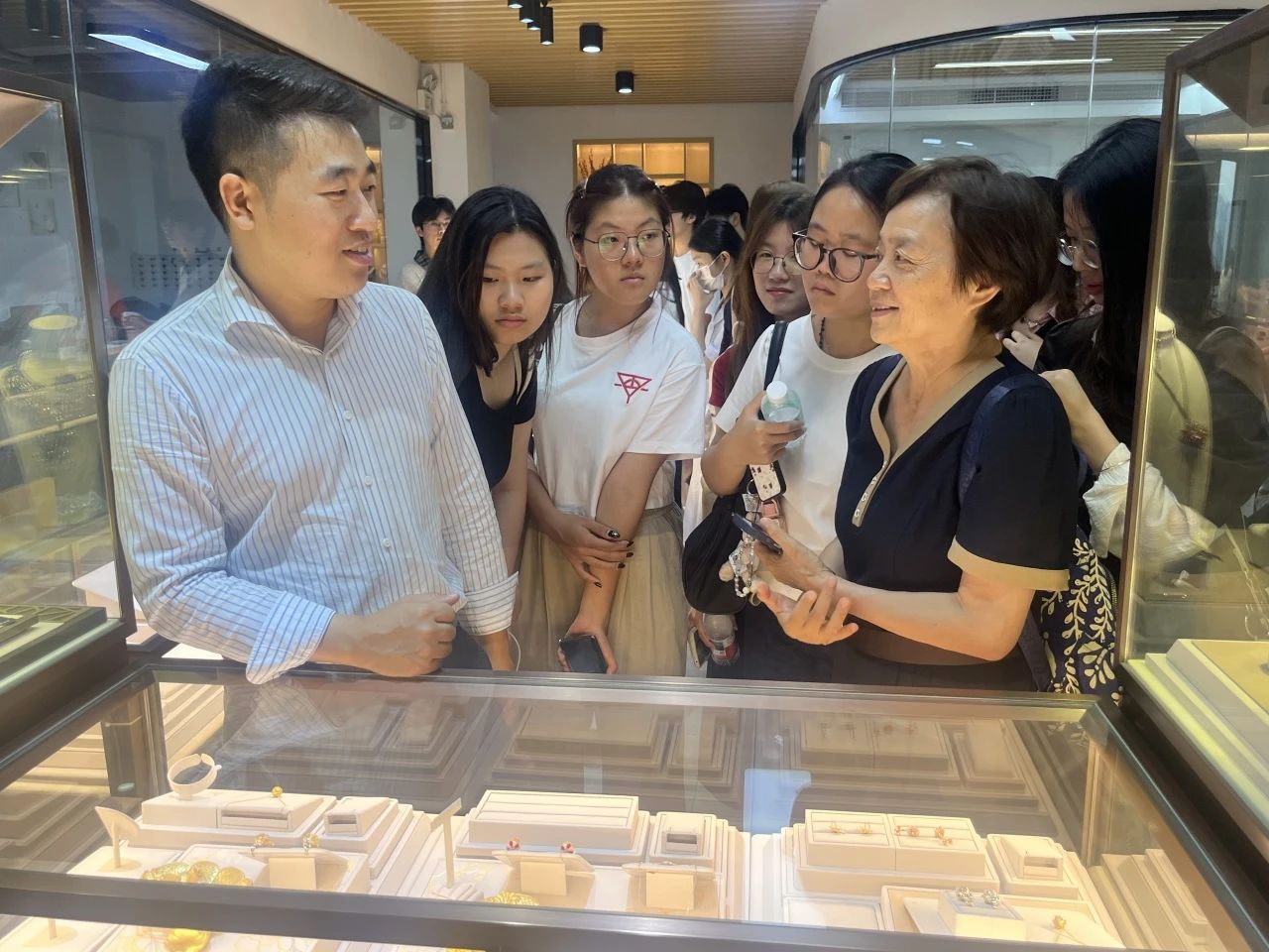 广州华商学院的师生一行参观了金俊汇珠宝交易中心、诚好珠宝、佰零壹高级定制珠宝品牌、黄金珠宝3D打印头部企业斯维迪、钻汇云选品中心等共同体和誉宝产教融合作授牌企业,同学们饶有兴趣的参观交流已经开始规划自己的创新创业项目和就业方向。