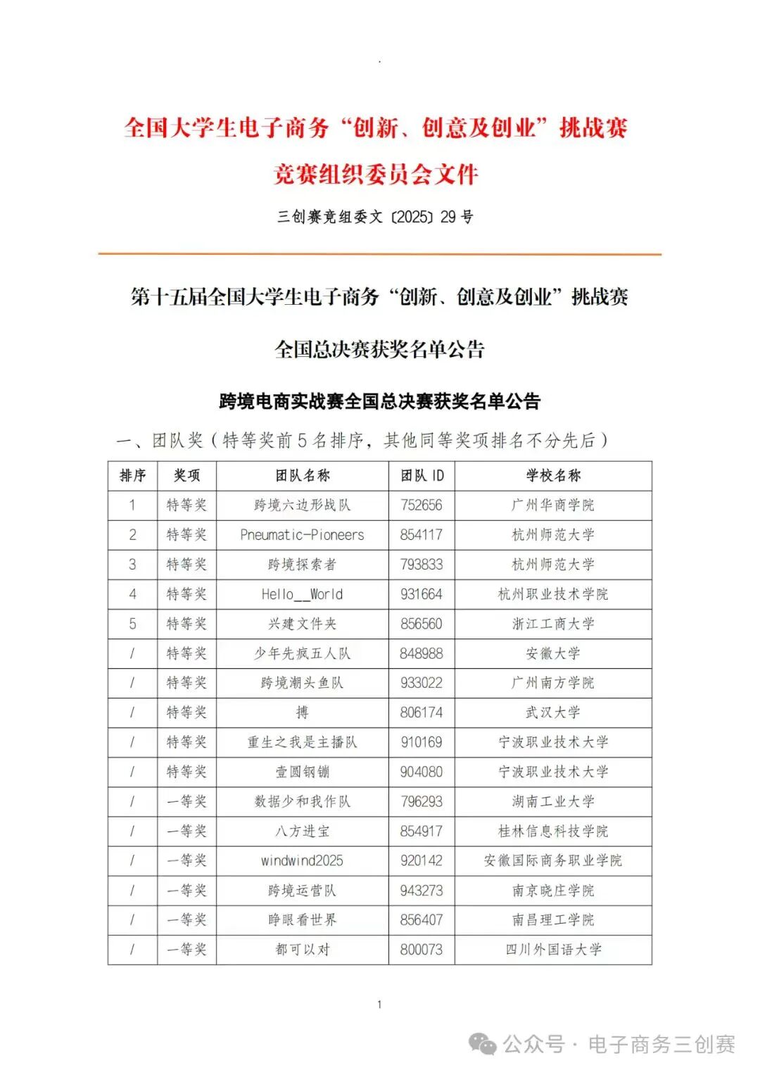 近日,第十五届全国大学生电子商务“创新、创意及创业”挑战赛全国总决赛在贵州圆满落幕。本届赛事共吸引全国31个省、自治区、直辖市及澳门特别行政区216所高校、317支参赛团队、1400余名师生同台竞技。我校国际学院组建的跨专业、跨学科战队——“跨境六边形战队”,以绝对优势斩获跨境电商实战赛全国总冠军(特等奖第一名),实现了我校在该项赛事的历史性突破!