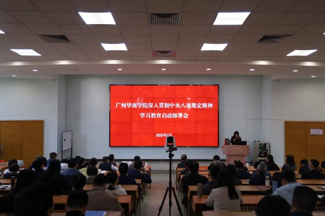 此次启动部署会标志着广州华商学院深入贯彻中央八项规定精神学习教育正式拉开帷幕。全体党员干部将以此为契机,增强纪律意识和规矩意识,以优良作风推动学校各项事业发展,为学校建校二十周年献礼,努力办好人民满意的教育。